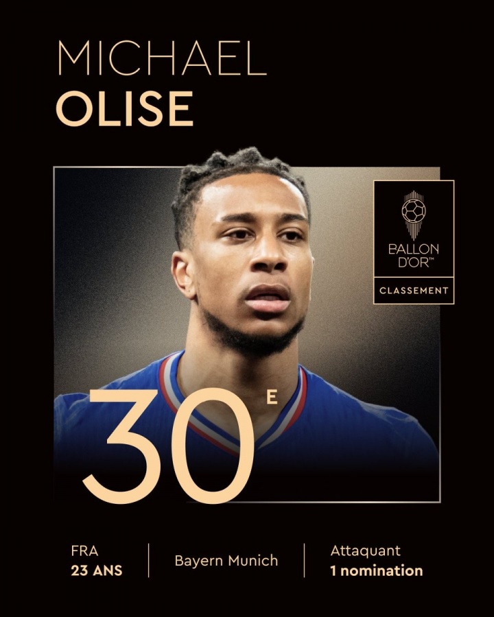 30、奥利塞(拜仁/法国、23岁、第一次获得提名)