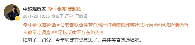 媒体人:结束了,罚分,今年职业联赛 有点意思了,具体等官方通稿