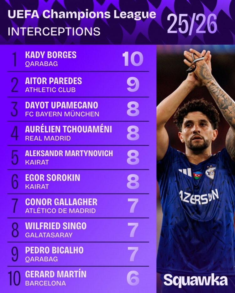 10月23日讯 欧冠第3轮已经完赛,数据机构squakwa统计了本赛季至今的欧冠阻拦 情况,苏超直播在线观看