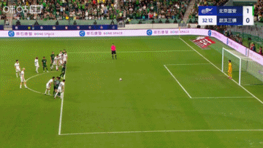 裁判 去场边观看VAR,判决 十二码球!法比奥亲自主罚命中,国安1-0领跑 三镇。