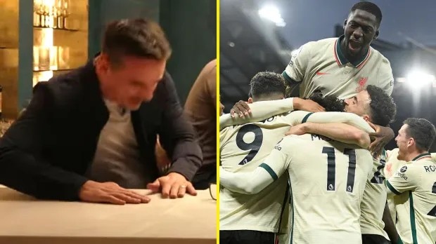 赌注是:如果内维尔输了,他必须在基兰收藏的2021年曼联主场作战 0-5大败 于利物浦的赛事 门票上签名。