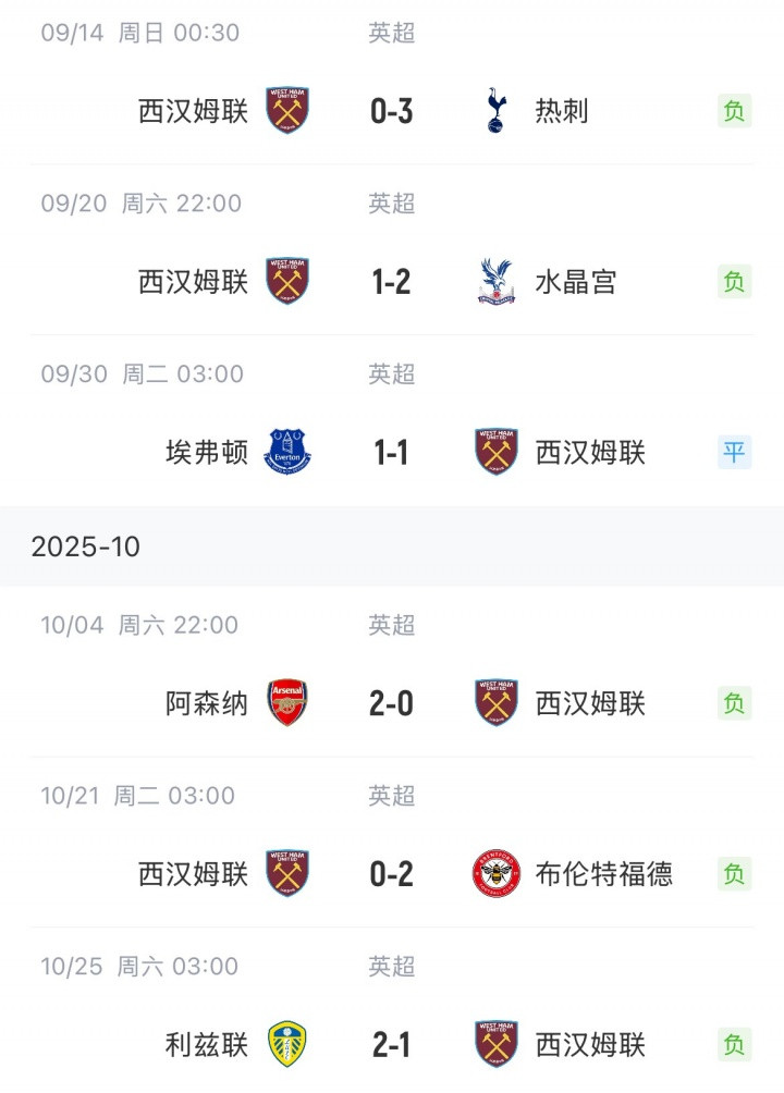 西汉姆1胜1平7负,苏超直播在线观看先赛暂排倒数第二,职业联赛 已三连败、六场不胜。