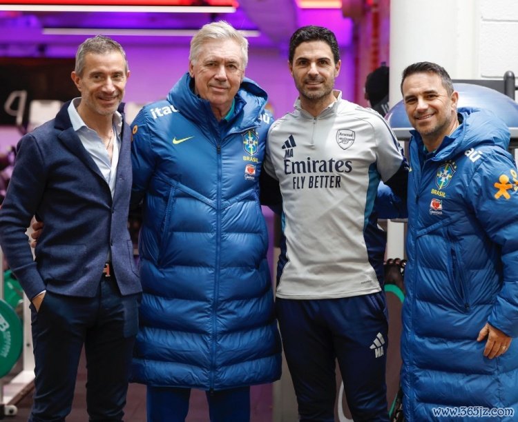 巴西队在阿森纳基地进行练习 ,安切洛蒂练习 之前与阿尔特塔合影,苏超在线直播高清视频无插件巴西队社媒晒出照片。